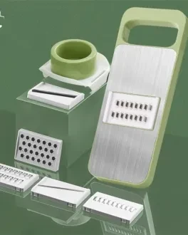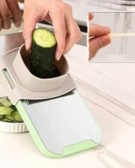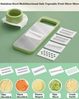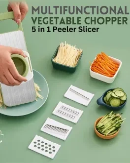 5-in-1 Multifunctional Vegetable Slicer & Chopper – Stainless Steel Blades, Hand Protector – Easy Manual Cutter & Grater for Potatoes, Carrots & Garlic