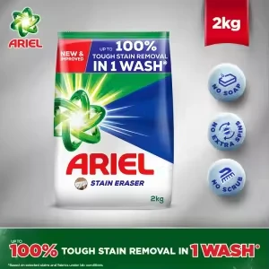 Ariel delivers powerful cleaning performance that removes tough stains while keeping your clothes fresh, bright, and soft. With its advanced formula, Ariel works effectively in both hand wash and machine wash, ensuring deep cleaning with minimum effort. Trusted for its quality and long-lasting freshness, Ariel makes laundry easier and your clothes look newer for longer.