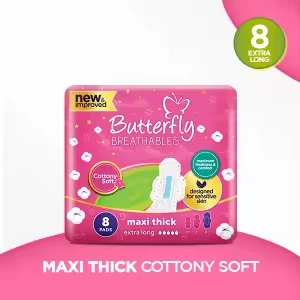 Butterfly Breathables Maxi Thick Cottony Sanitary Pads Extra Long 8 Pcs
