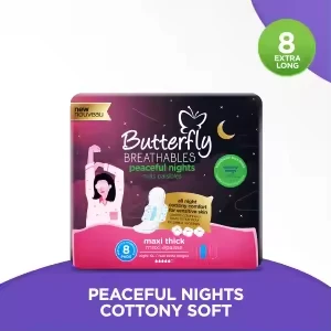 Butterfly Breathables Peaceful Nights Cottony Comfort Extra Long 8 Pcs