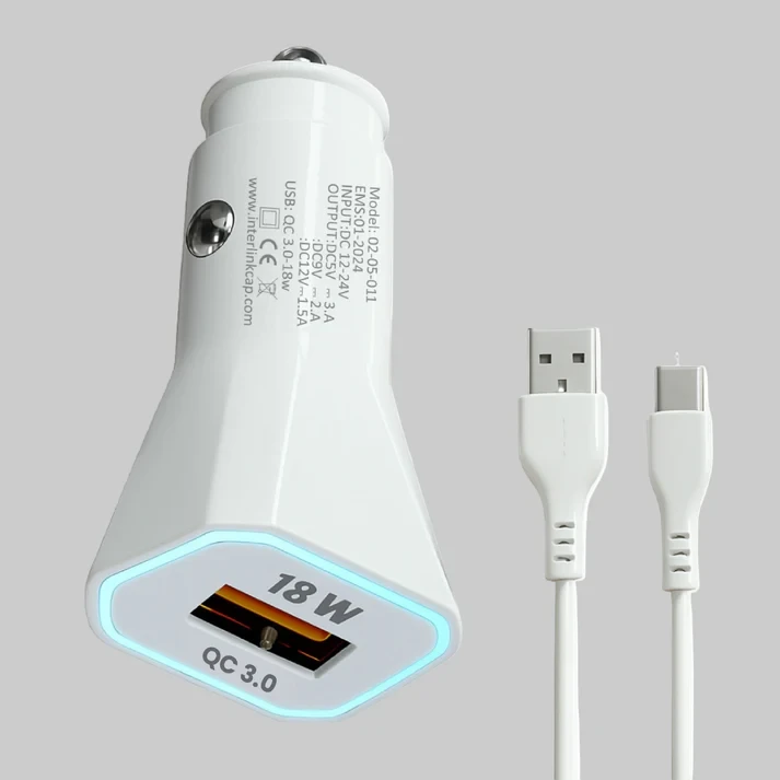 - Power: 18W Fast Charging - Port: USB with Fixed Type-C Cable - Design: Compact & Durable - Safety: Overheat & Short-Circuit Protection - Compatibility: Android, iPhone & GPS