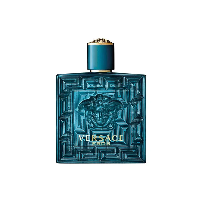 Eros Pour Homme Eau de Toilette is a seductive fragrance inspired by the classical Greek God of love. Its confident and masculine notes embody sensuality and power. The fragrance is housed in a transparent blue bottle, adorned with a central Medusa, Greca engravings, and gold accents on the cap. To enhance the fragrance's longevity, apply it to key pulse points (neck, inner wrists, behind the ears, or chest). Avoid spraying the fragrance directly on delicate materials and jewelry, as this may cause damage.