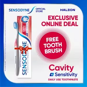 Sensodyne Cavity + Sensitivity Toothpaste, 24H Dual Protection, 100g X Free Toothbrush